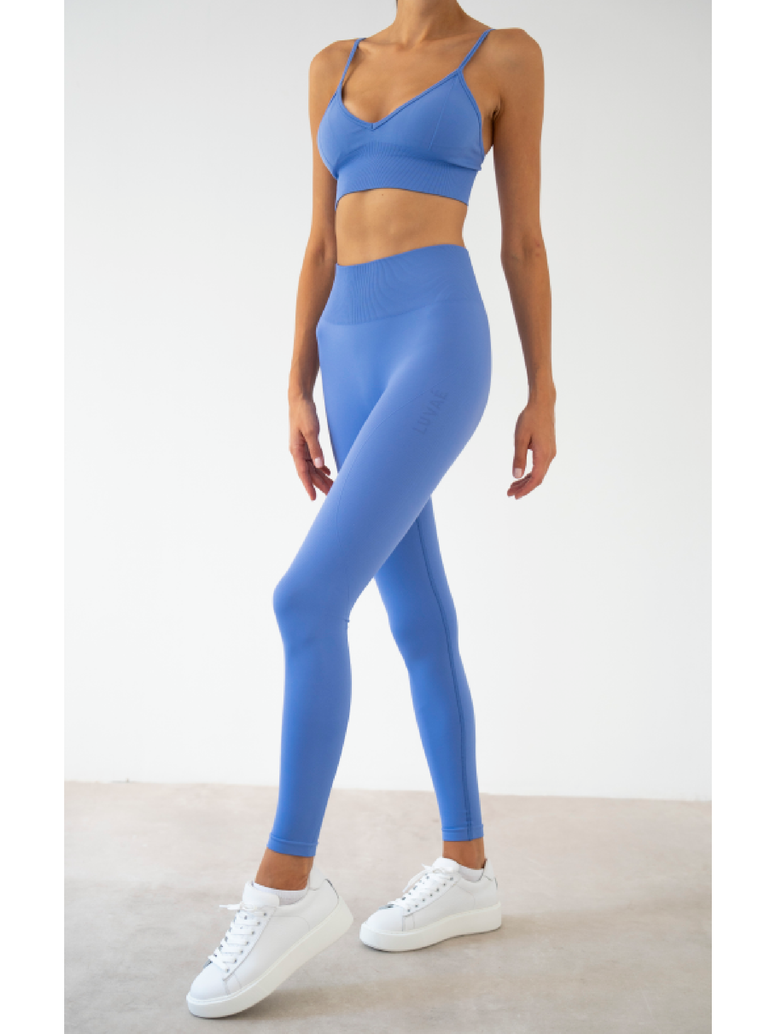 3'lü Set Şort, Tayt, Bra Takım- Mavi